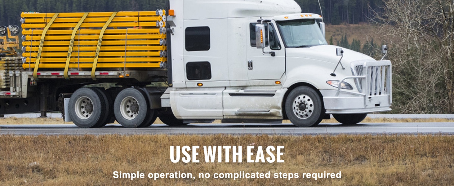 Kierrä kuorman ympäri, kiinnitä ja kiristä – käyttö on suoraviivaista ilman monimutkaisia vaiheita. Hihnat sopivat erityisesti lavetti- ja perävaunukuljetuksiin.