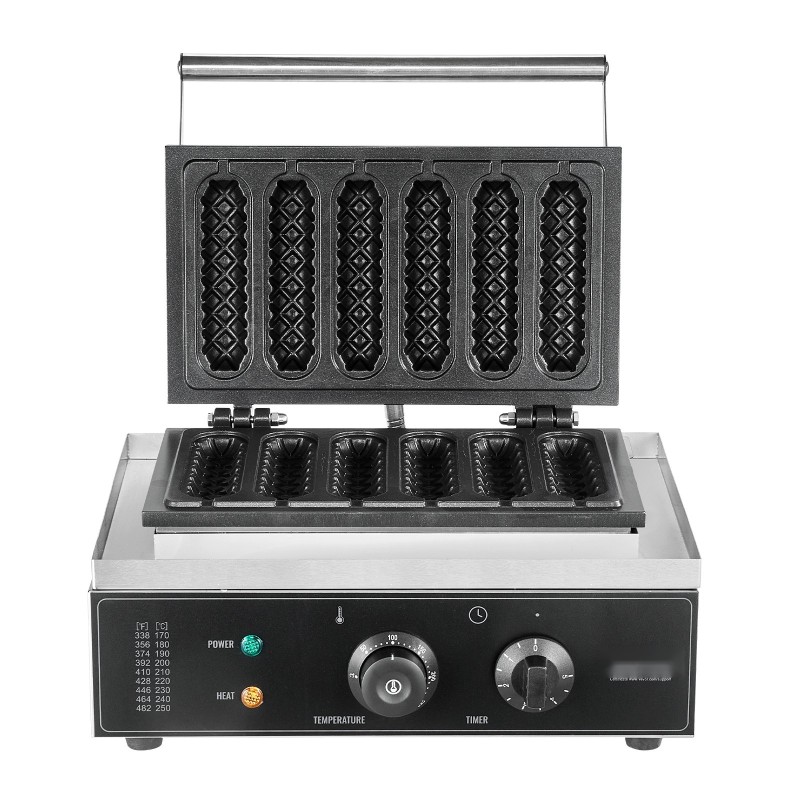 Vohvelitikkukone 6-paikkainen 1500W ruostumaton teräs tarttumaton paistopinta kahviloihin ja kotiin