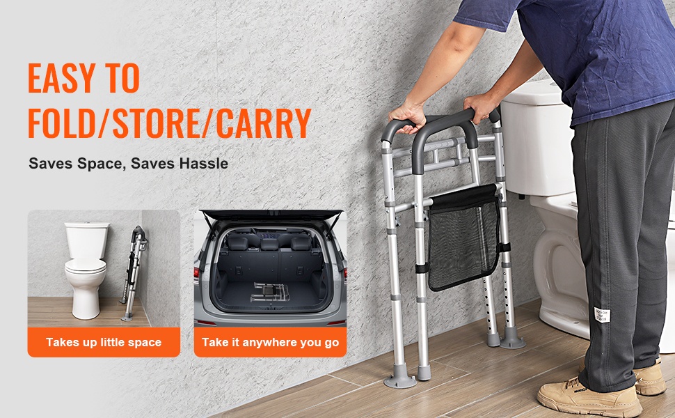 Kaiteen rakenteen ansiosta sen voi taittaa nopeasti kasaan ilman purkamista, mikä säästää tilaa. Tämä on käytännöllistä esimerkiksi iäkkäille käyttäjille, toipilaille tai liikuntarajoitteisille, kun kaide halutaan siirtää sivuun tai ottaa mukaan matkalle.