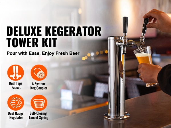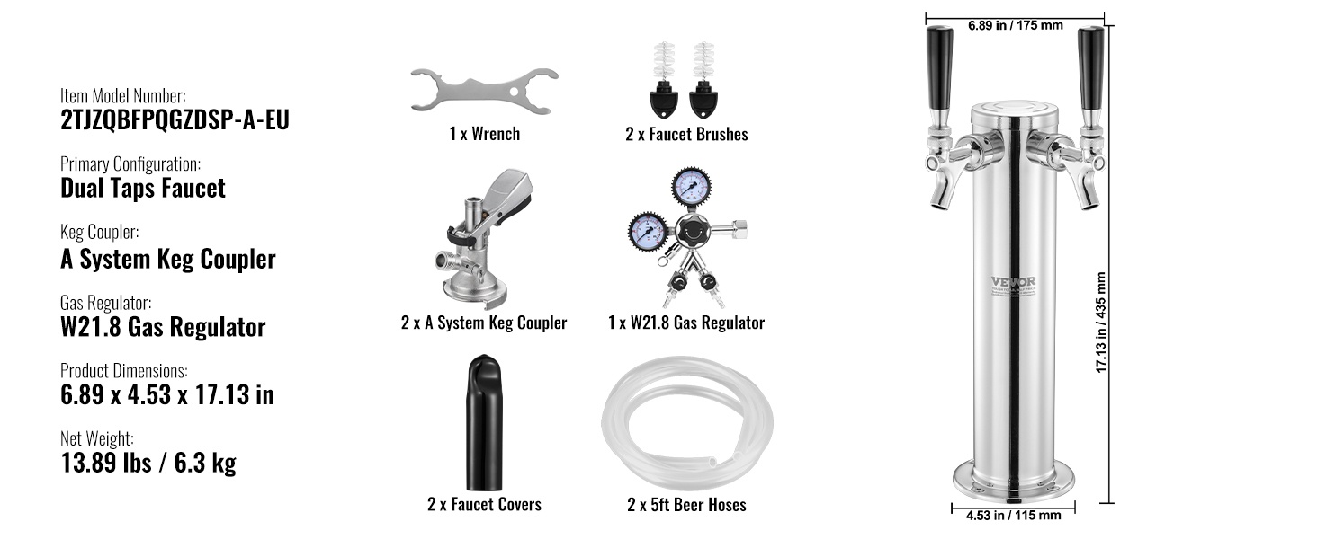 Tämä hanatornisarja muuntaa tynnyrioluen kaadon siistiksi ja tasalaatuiseksi. Pakettiin kuuluu itse sulkeutuva oluthana, W21.8-kaksoispainemittarilla varustettu kaasunsäädin, S-system -tynnyriliitin, ruostumattomasta teräksestä valmistettu torni sekä kromattu messinkihana ruostumattomalla 304-teräksisellä sisäosalla.