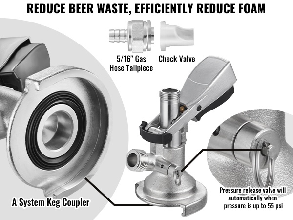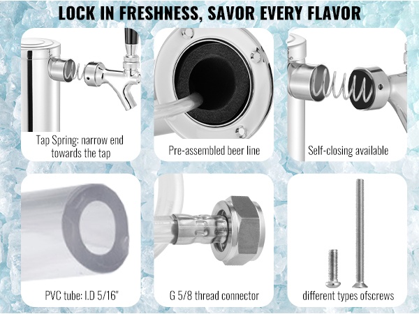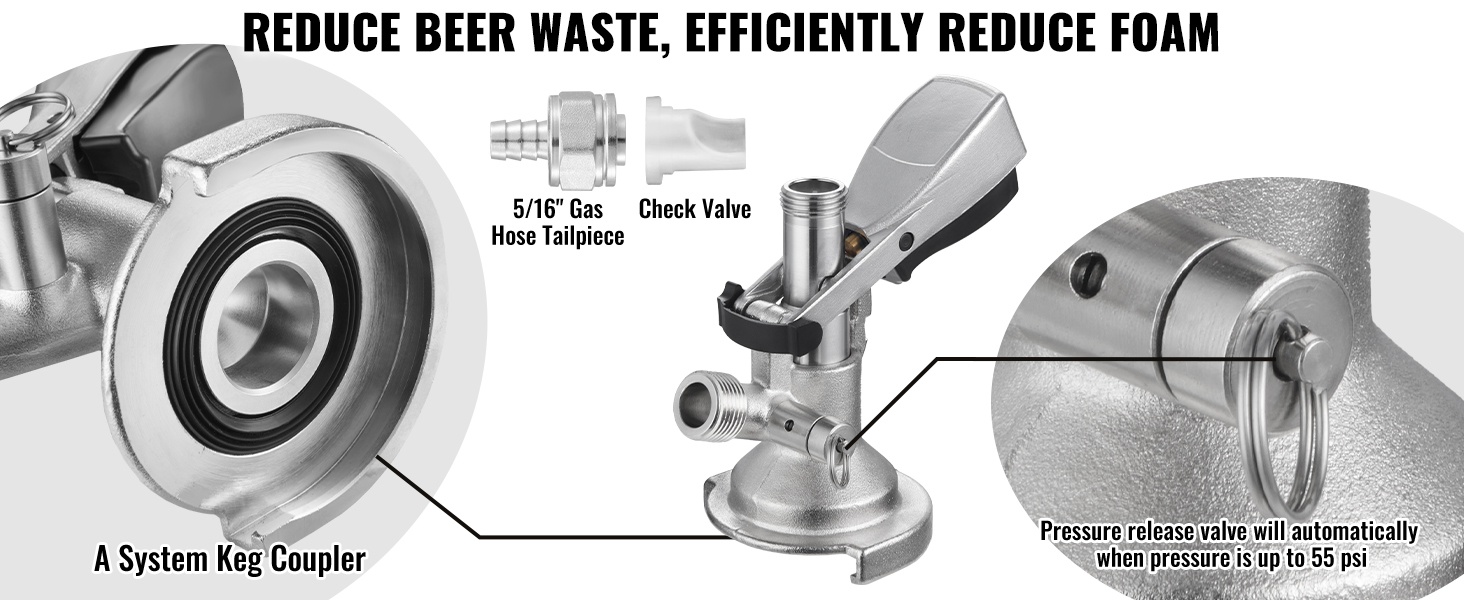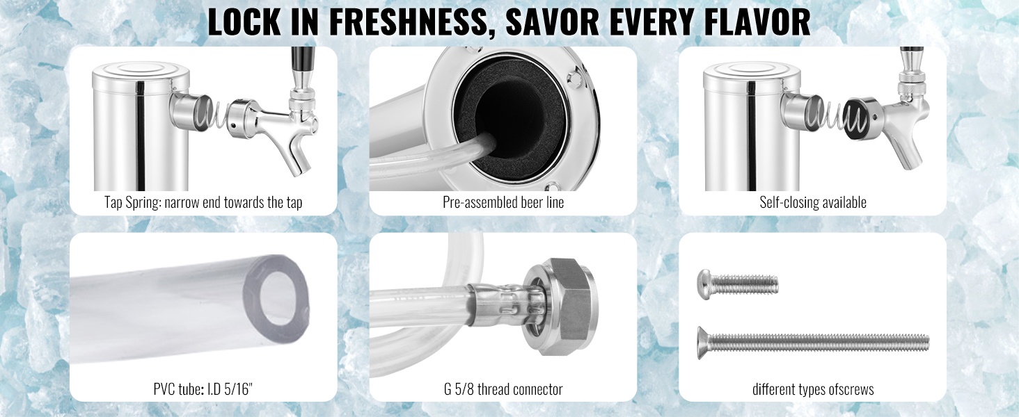 5FT PVC-jakel letku tarjoaa tiiviin ja hajuttoman virtauksen. Päivitetty venttiilin ydin vähentää oluen iskuvoimaa, mikä auttaa hallitsemaan vaahtoamista ja säilyttämään alkuperäisen maun. Letkukiristin varmistaa tiukan liitoksen tynnyriliittimeen ja ehkäisee vuotoja.