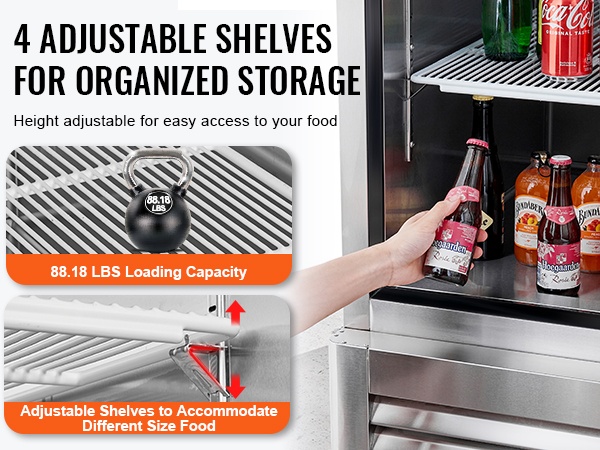 - 3 säädettävää hyllyä, kantavuus 88.18 LBS per hylly