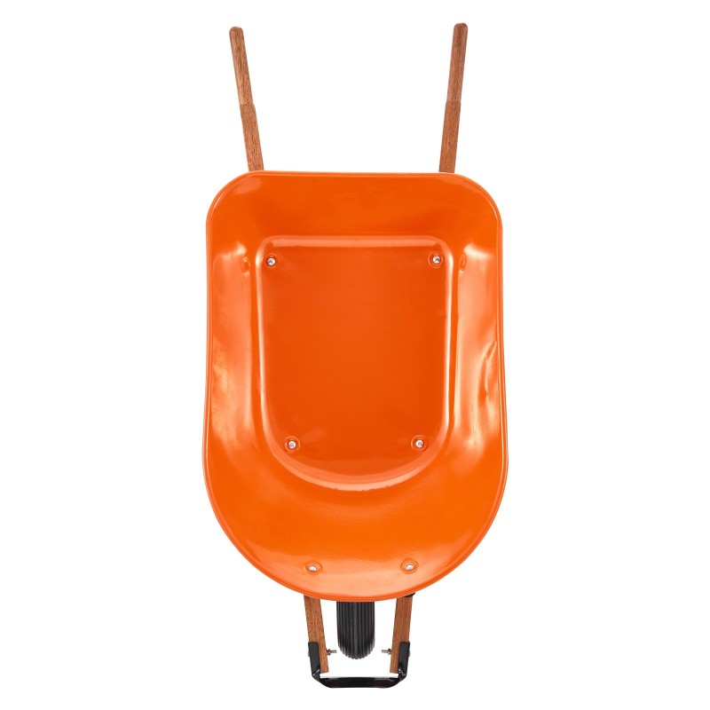 Tämä yhden pyörän puutarhakärry helpottaa maa-ainesten, soran, lehtien ja muiden materiaalien kuljettamista pihalla ja puutarhassa. Pehmustettu metallikahva ja 16-tuumainen, syväkuvioinen pyörä tekevät liikkumisesta vakaata ja sujuvaa myös epätasaisessa maastossa. Tukeva rautarunko ja PU-täyspyörä kestävät ulkokäyttöä vääntymättä tai halkeilematta.