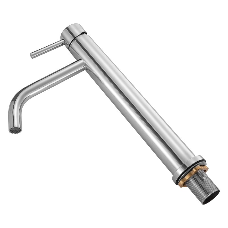 Tämä yksivipuhana on valmistettu 304-ruostumattomasta teräksestä ja varustettu punotulla letkulla, mikä parantaa korroosion- ja vuotosuojauksen tasoa. Yksi vipu mahdollistaa veden lämpötilan ja virtauksen helpon säädön, ja painamalla avattava pohjaventtiili tekee altaan tyhjentämisestä vaivatonta. Mukana tulevat kaikki tarvittavat osat suoraviivaista asennusta varten.